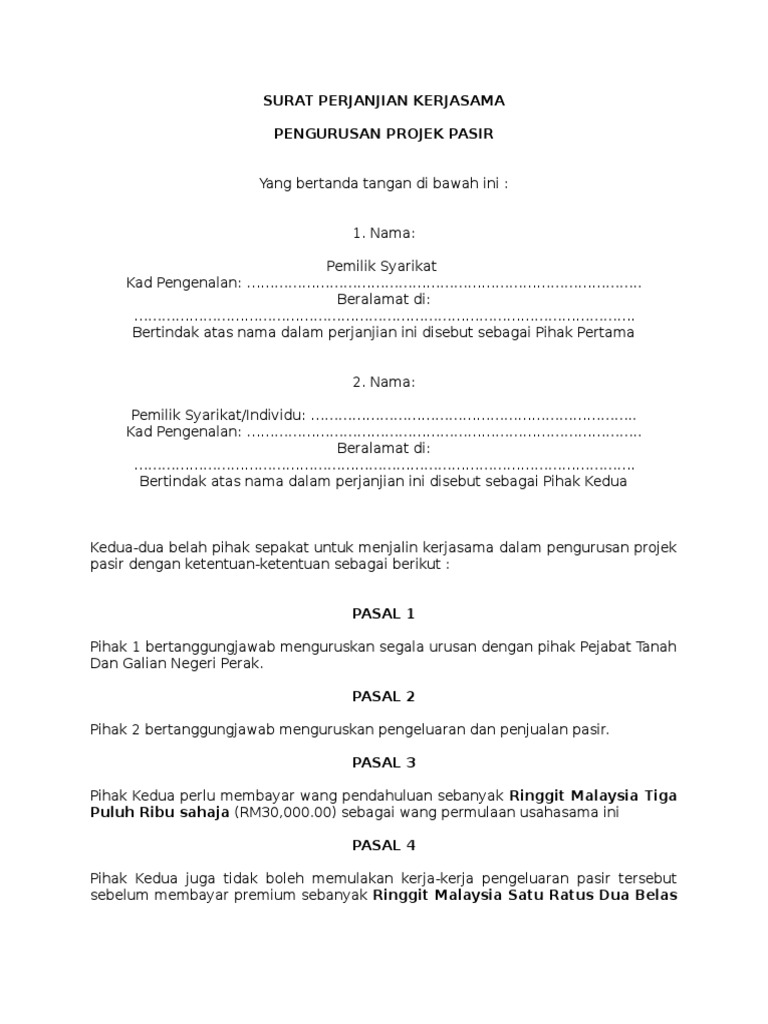 . Surat cuti merupakan surat yang dibuat sebagai bentuk pemberitahuan atau permohonan izin ke perusahaan agar dapat diberikan izin tidak masuk. Perjanjian perkongsian perniagaan ini berlaku pada tanggal dimana surat ini ditandatangan oleh kedua pihak sehingga 29 feb 2018 5 bulan mengikut. Berikut ini aku akan memberikan contoh surat perjanjian kerjasama yang biasanya aku membuat untuk kerjasama dengan brand-brand.